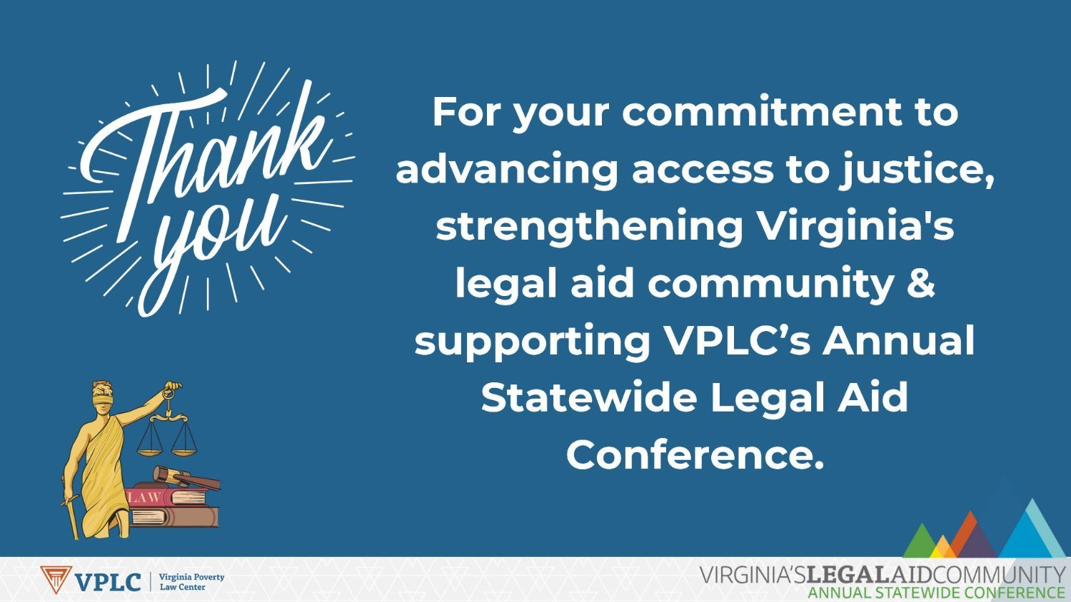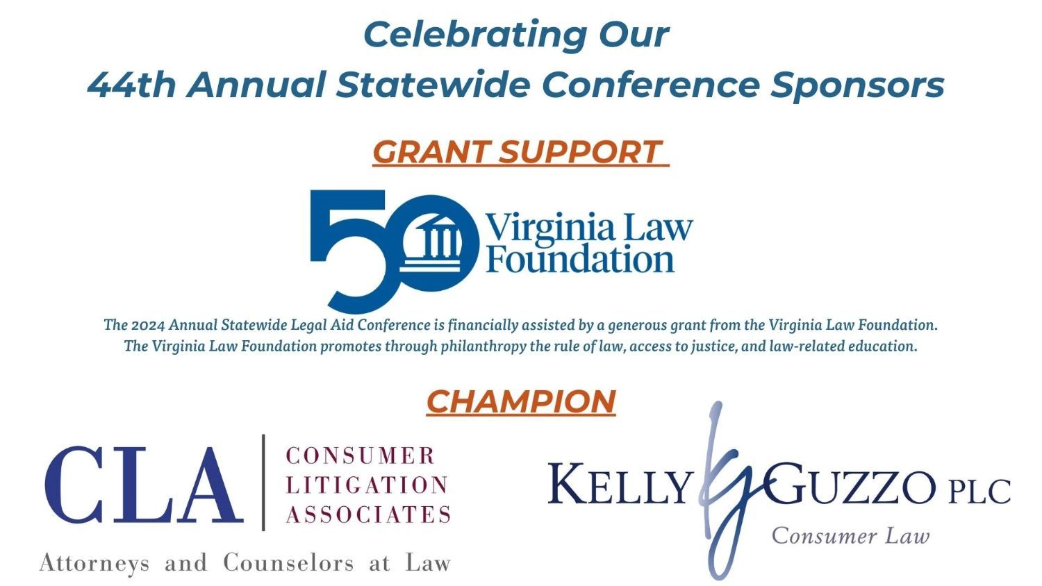 This fall, more than 500 legal professionals attended dozens of educational sessions at the annual Statewide Conference held in Williamsburg. These essential trainings on the latest issues in civil poverty law are only possible thanks to the generous support of our cherished sponsors!